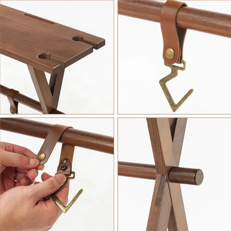 ★CHANODUG OUTDOOR★アウトドア ウッドハンギング2WAYラック★ブラウン★レザーフック5点・ケース付★キャンピングハンガーラック★ | |||