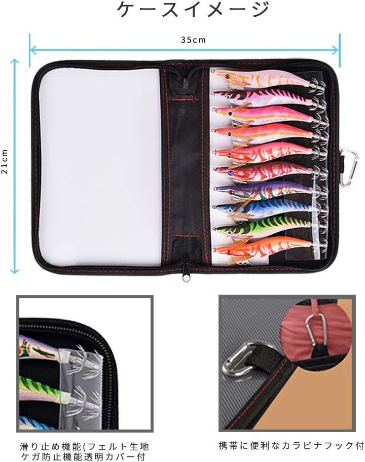 コスパ最高 10本セット 新品 エギ ルアー アオリイカ 夜光浮きスッテ イカ釣り 海釣り 船釣 ケース付き 夜釣り 3.5号