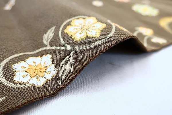 〔帯の色〕 茶色地/六通柄 〔素材〕 正絹 |