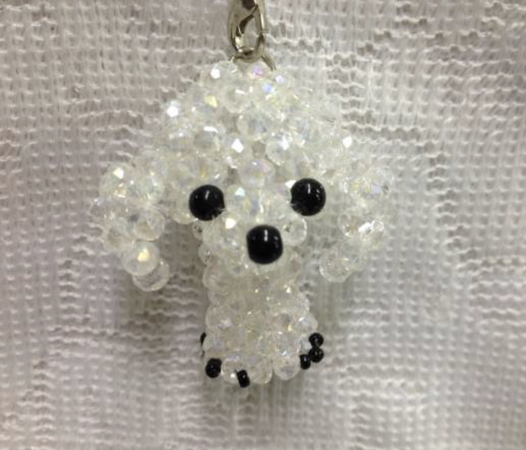 新品 クリスタルビーズ ハンドメイド プードルのストラップ