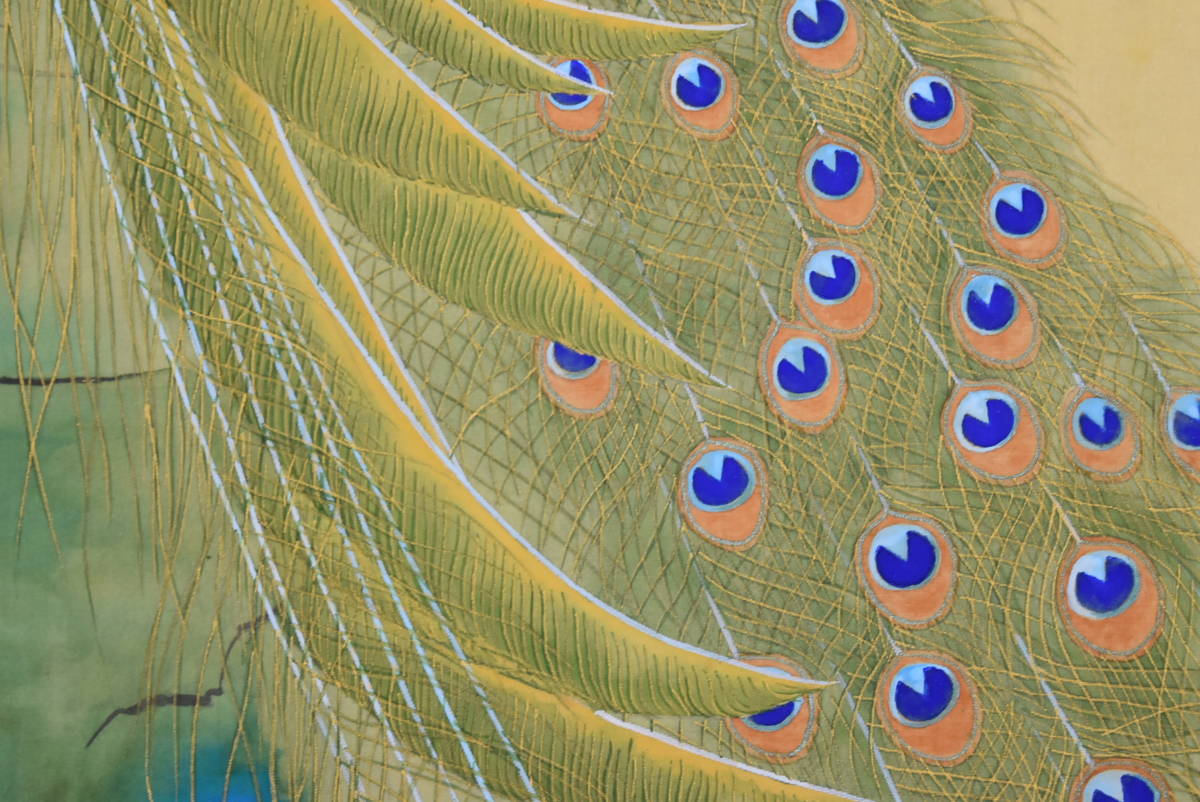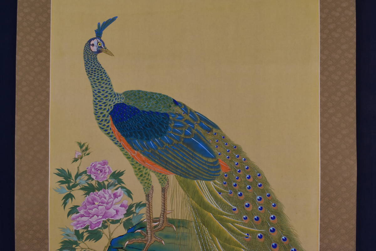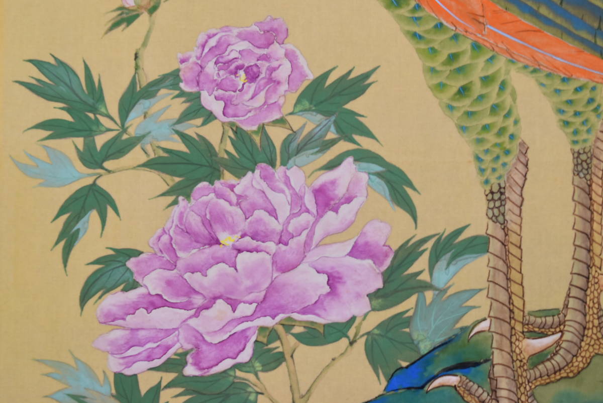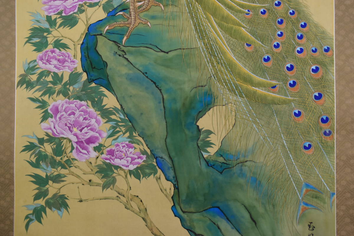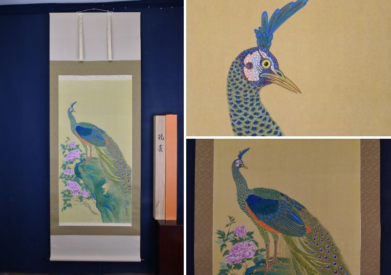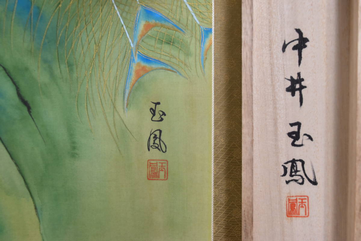 真作/中井玉鳳/孔雀図/牡丹に孔雀//掛軸☆宝船☆AA-884