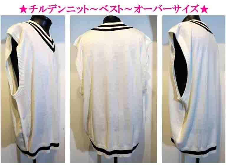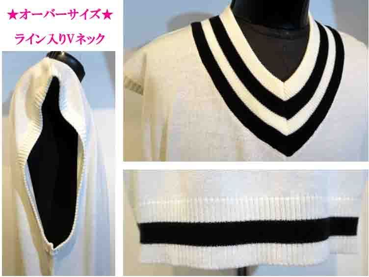 新品 Mサイズ ベスト Vネック チルデンニット ビッグサイズ 白 9953 02 ホワイト メンズ レディース ニットベスト ライン入り スクール