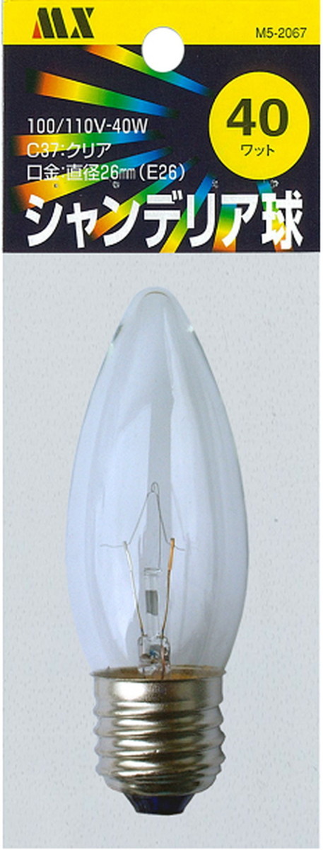 交換用の電球です。100/110V-40WC37:クリア口金:E26サイズ等お確かめの上、お買い求めください。