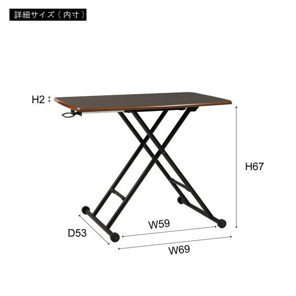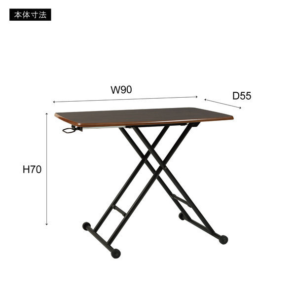 シンプルで丸みのあるやわらかなラインや少しレトロを感じさせる光沢のある天板が特徴のミッドセンチュリーを感じさせる昇降テーブルです。●レトロ調で光沢のある天板が特徴のミッドセンチュリーテイストの昇降テーブル●天板は木目調プリント化粧繊維板にポリエステル塗装を施した高級感のある鏡面仕上げ●水に強く汚れ等も拭き取りやすくお手入れ簡単●天板横のレバーを引きながら高さ調整が可能サイズ: W90×D55×H11.5-70 材質・素材: プリント化粧繊維板 ポリエステル塗装(鏡面仕上) スチール(粉体塗装) 組立 折りたたみ式 昇降機能 ※コチラの商品は、北海道、沖縄県及び離島へお届けできません。テーブル リフトテーブル 昇降テーブル センターテーブル 鏡面 折りたたみ 昇降 便利 ローテーブル ダイニング ブラウン※イメージ画像に含まれる備品等は商品に含まれません。(例:販売商品のテーブル等に合わせたチェアや敷物、カップやディシュ等)