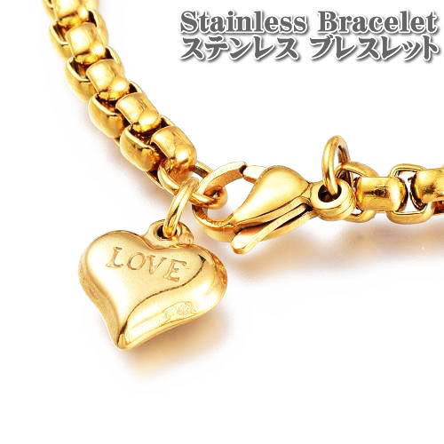 ステンレスブレスレット 「LOVE」ハートのブレスレット Stainless ベネチアンチェーン ステンレス チェーン ブレスレット ゴールド | |