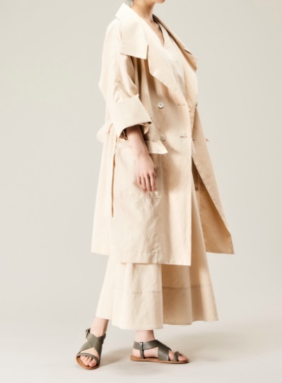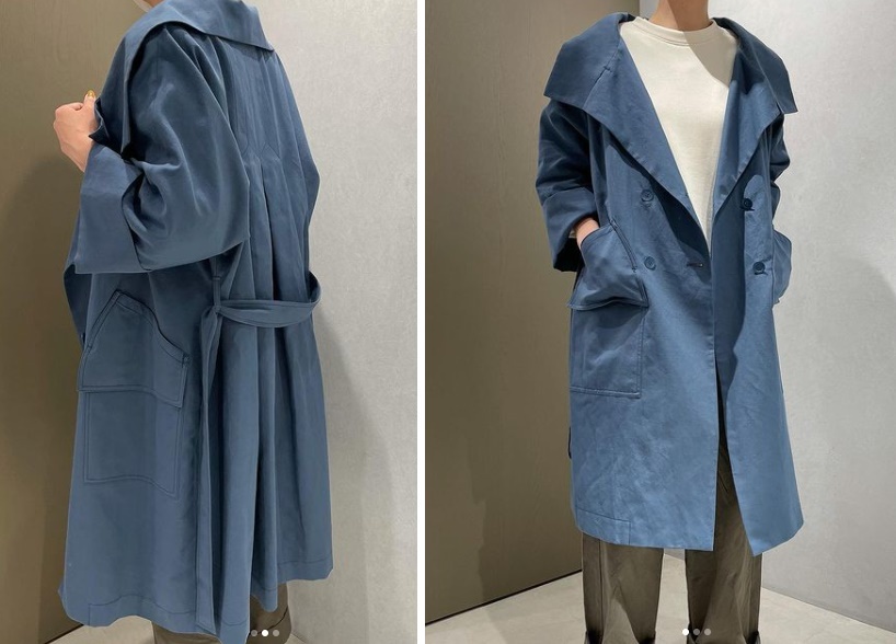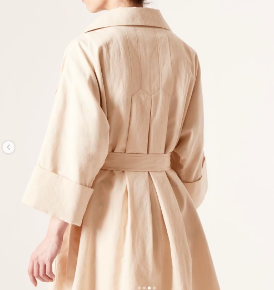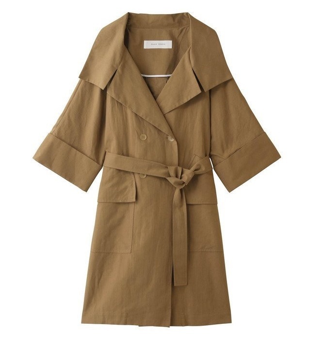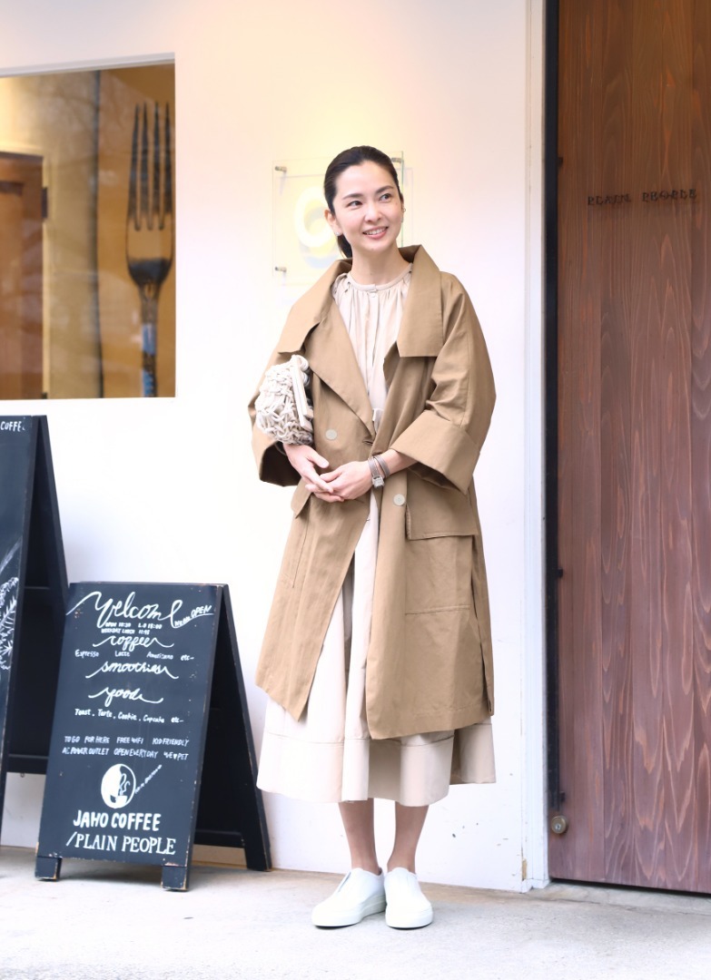 大きな襟とロールアップした太い袖、大きなポケットがポイントに。ラフに羽織ったりベルトでウエストマークしたりとアレンジを楽しめるのも◎。