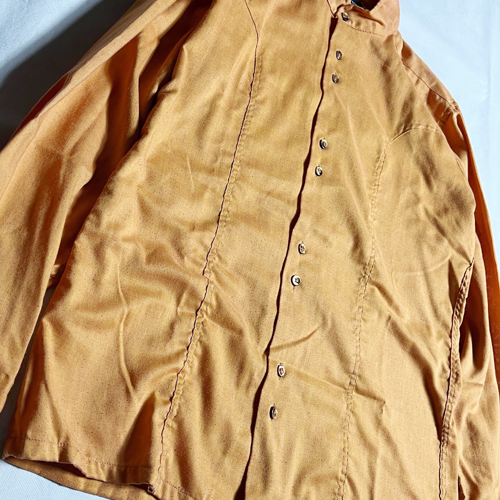 70's U.S. マオカラー デザイン シャツ コットン 平織り オレンジ MAO COLLOR DESIGN SHIRTS COTTON アメリカ USA スタンドカラー VINTAGE