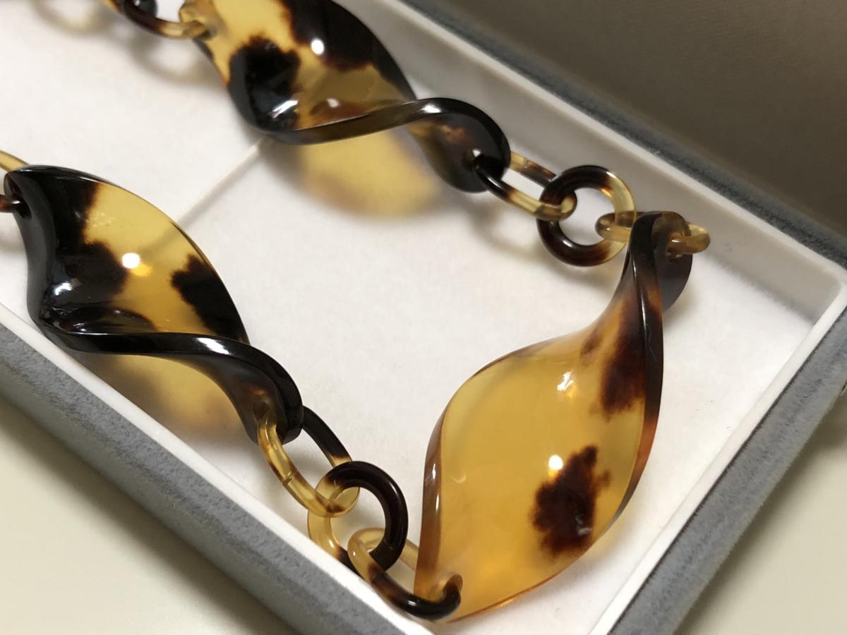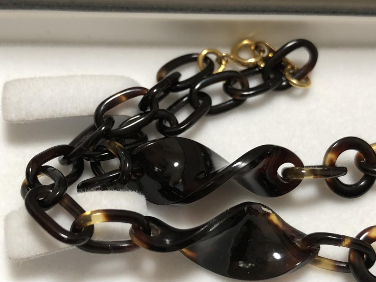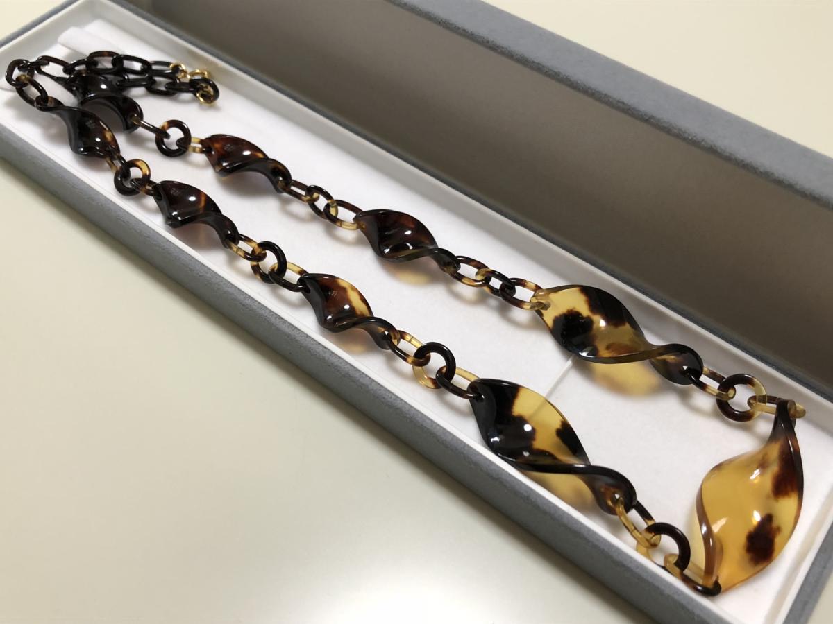 アンティークの本鼈甲を使用した、ツイストデザインのネックレスです。欠けや虫食いは無く、美品です。 長さ54.0㎝、重さ9.9g