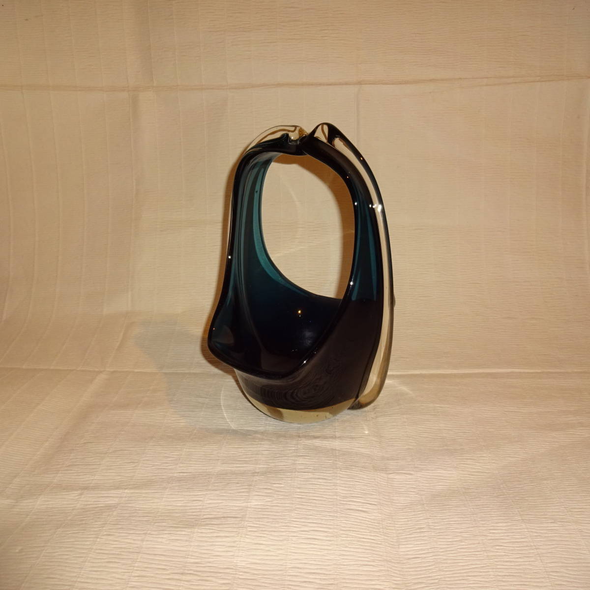 硝子バスケット型フラワーベース 工芸ガラス花器 中古