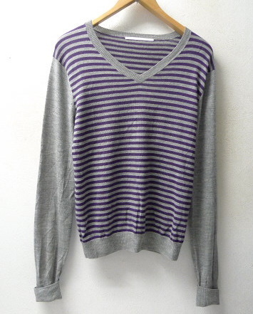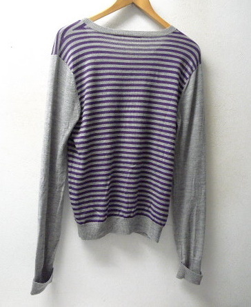 ◆ ◆CICATA シカタ Vネック ボーダー 切替 ニット グレーパープル サイズ2
