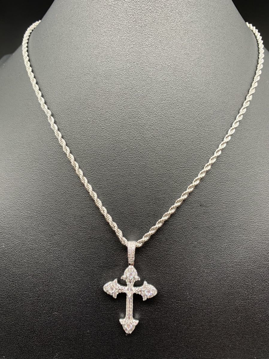 お洒落なデザインの十字架 とセンターの存在感のあるジルコニアが綺麗なネックレスです。
