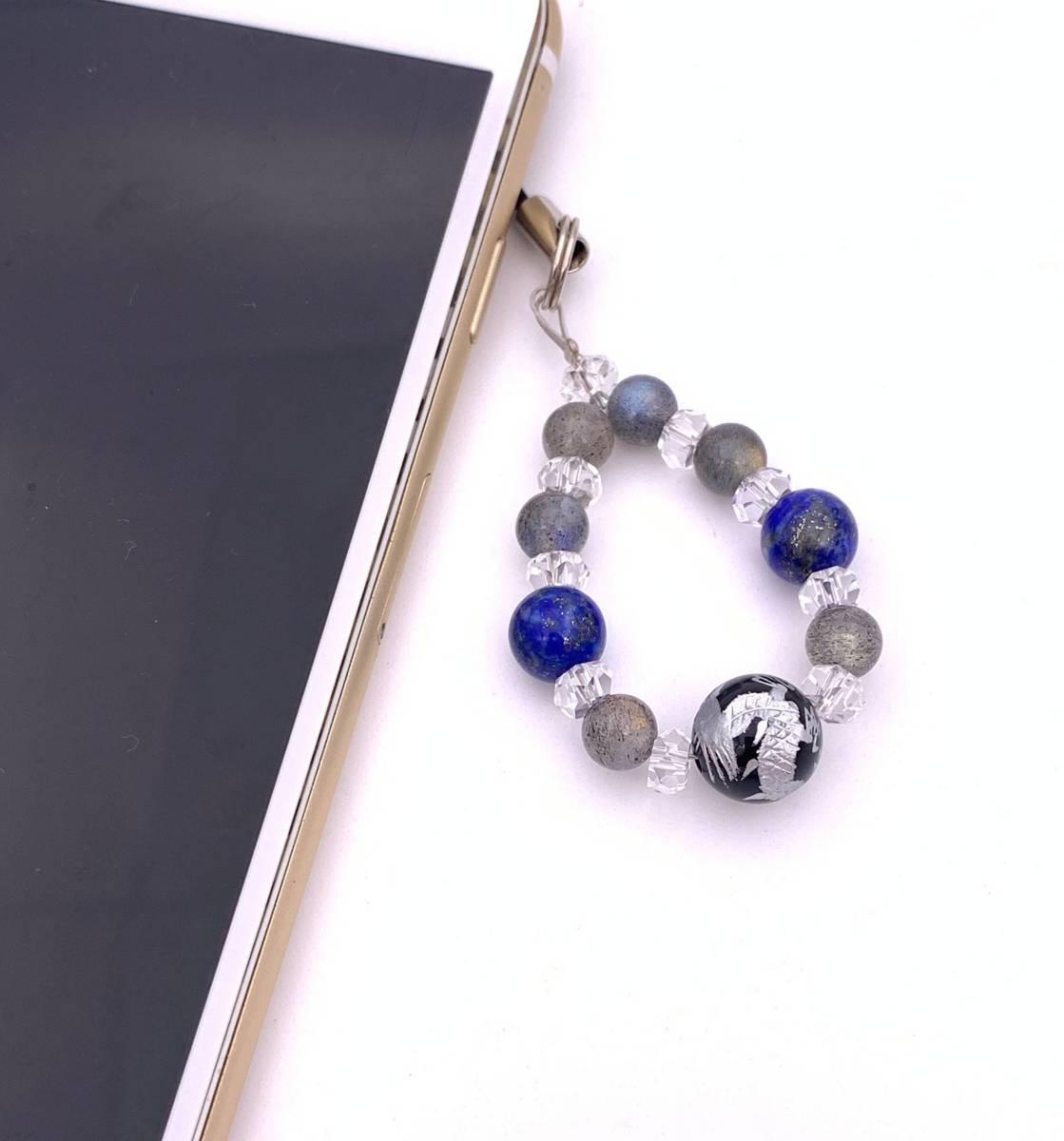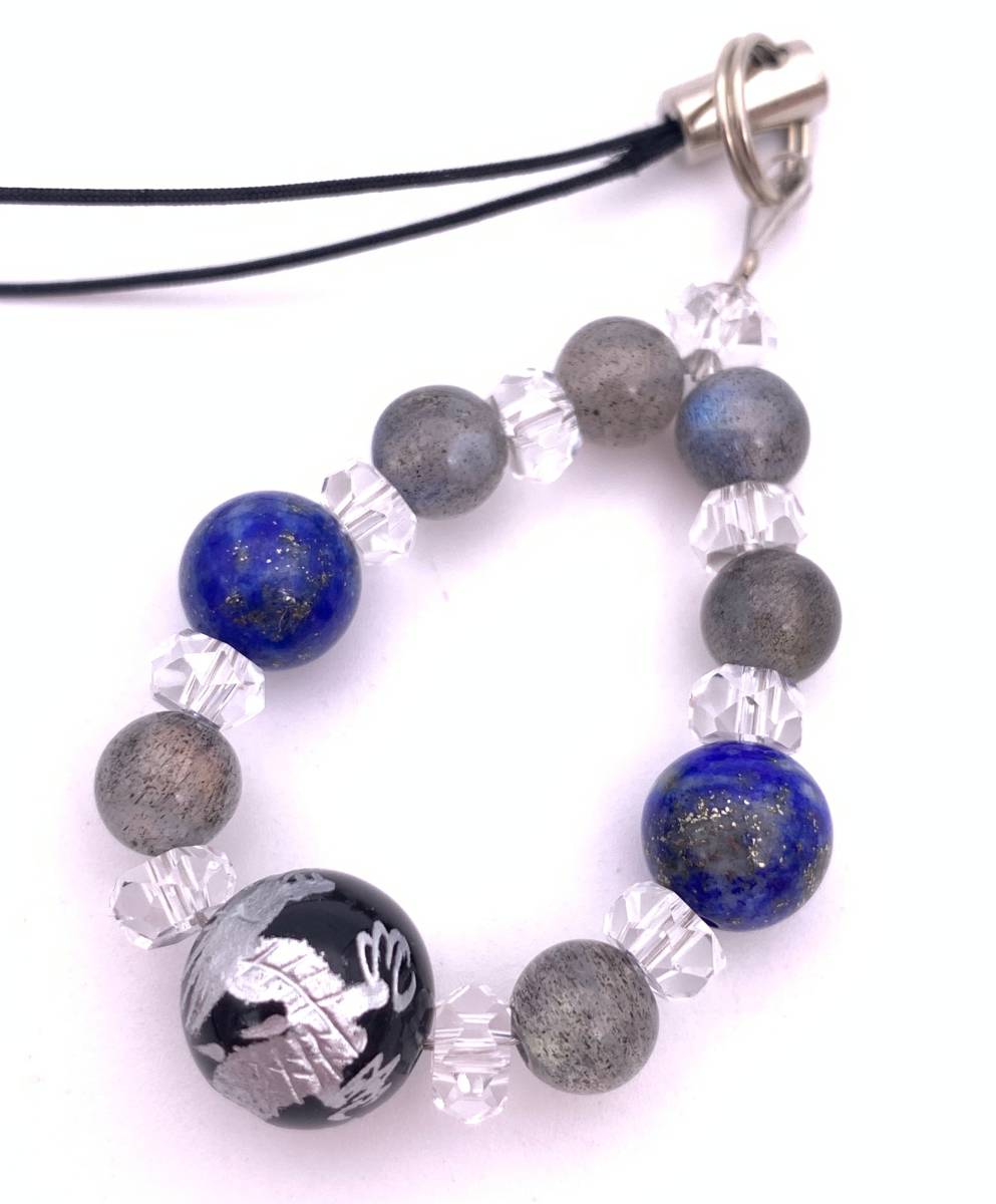 天然石オニキス銀彫り青龍&ラピスラズリ&ラブラドライトのストラップ