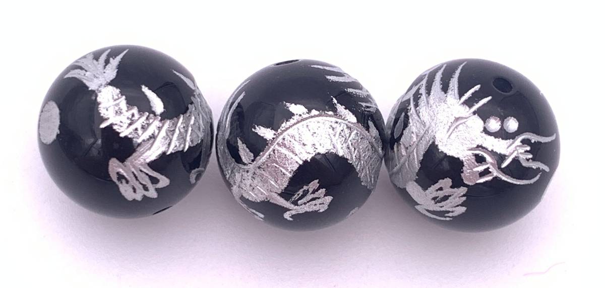 手作り!オリジナル★天然石オニキス銀彫り青龍&ラピスラズリ&ラブラドライトのストラップ