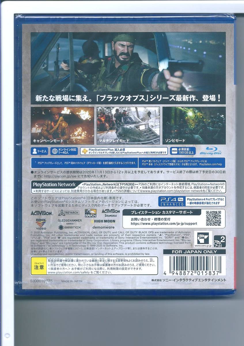 | ●JANコード4948872015837 n1 ☆PS4 コール オブ デューティ ブラックオプス コールドウォー ●商品の状態 新品未開封、包装されたままの状態ですが、包装にスレ・イタミがあります。 |