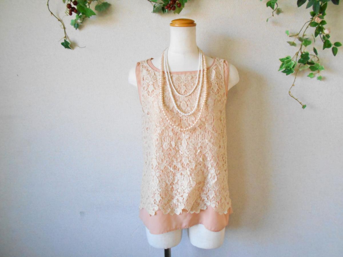 【ポイント】ボッシュのノースリーブブラウスになります。お色は肌色の生地とキナリのレースが使用してあります。