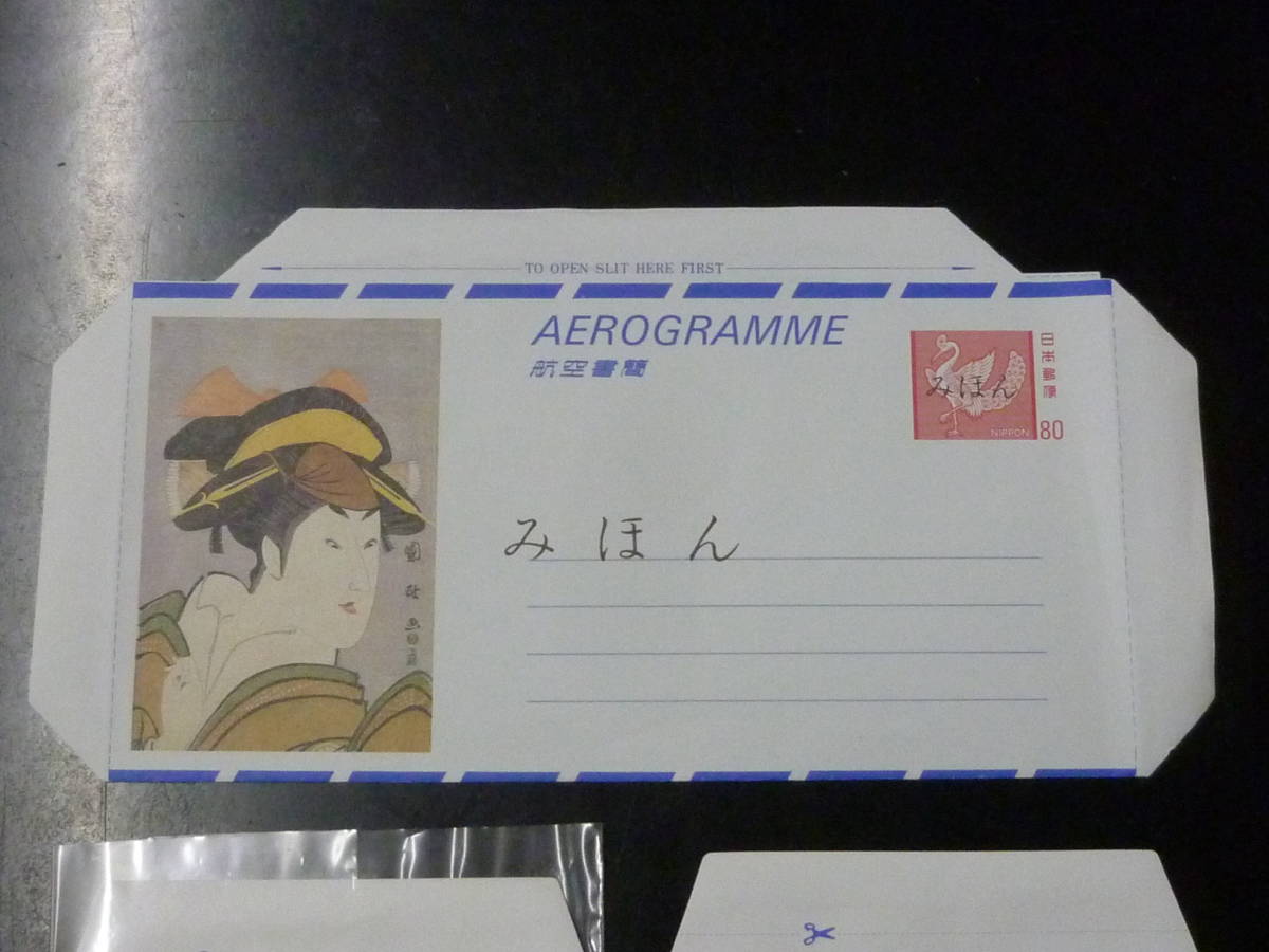 22 P №25 【日本 みほん書簡】 航空書簡 1988年 空簡27 文通週間 80円・他 計2種 3通