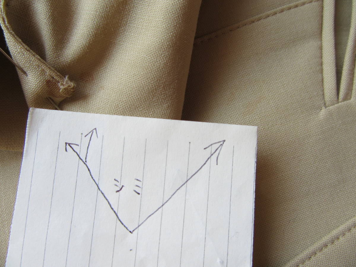 状態、上下とも、薄いシミがあります。ジャケット、3ヶ所、スカート,2ヶ所。シワ有。この他にも、見落としがあるかもしれませんので、