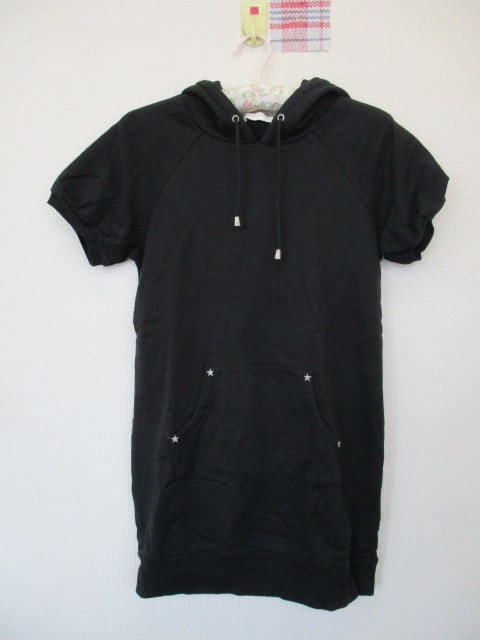 ★ earth music & ecology 半袖 ロングパーカー ブラック(F)