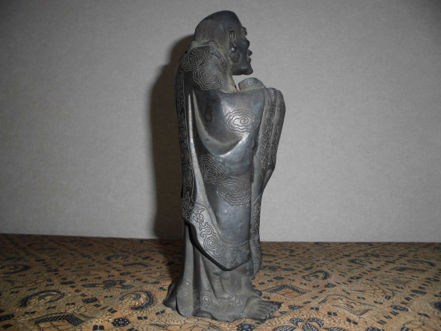 【商品説明】趣のある達磨大師の像。真鍮製。隻履西帰(せきりせいき。達磨だるまが片方の草履を手に持って、西方の国に帰ったという故事。「隻履(せきり)西に帰る」)【サイズ】25センチ【2021年2月17日出品】