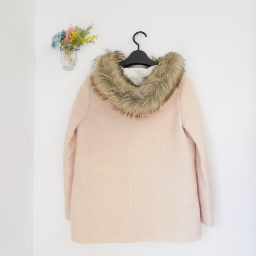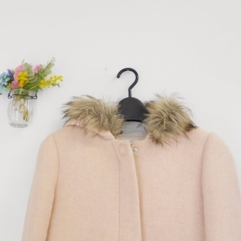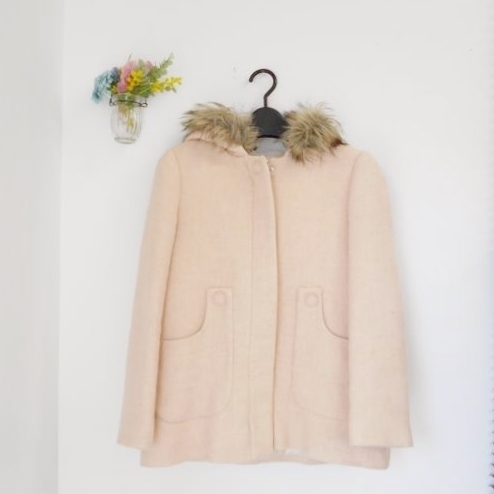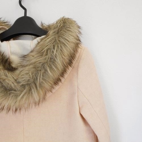 ザラ ガールズ Zara Giris 秋冬向きの暖かいコートです。フェイクファー付です。(取外し不可)お色はサーモンピンク系です。生地の性質上黒っぽい感じの所がございます。秋冬のオシャレにぜひどうぞ。