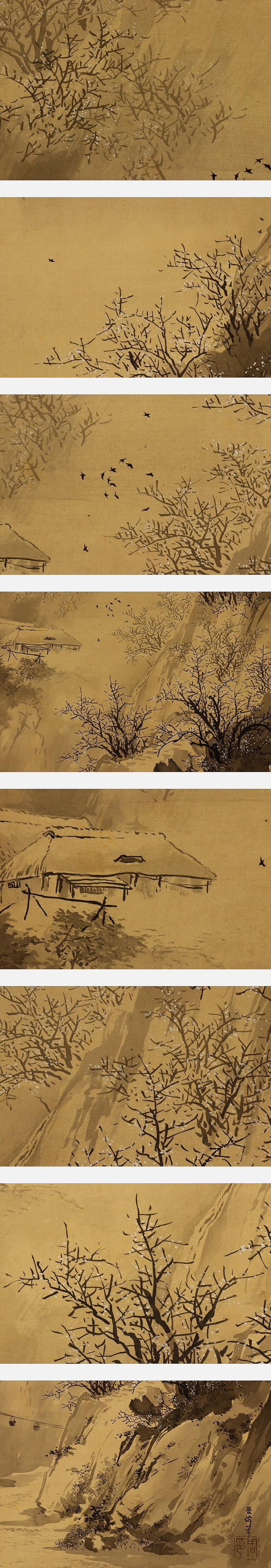 | №2112117【模写】土田麦僊【梅林図】◆絹本◆合箱◆掛軸 | |