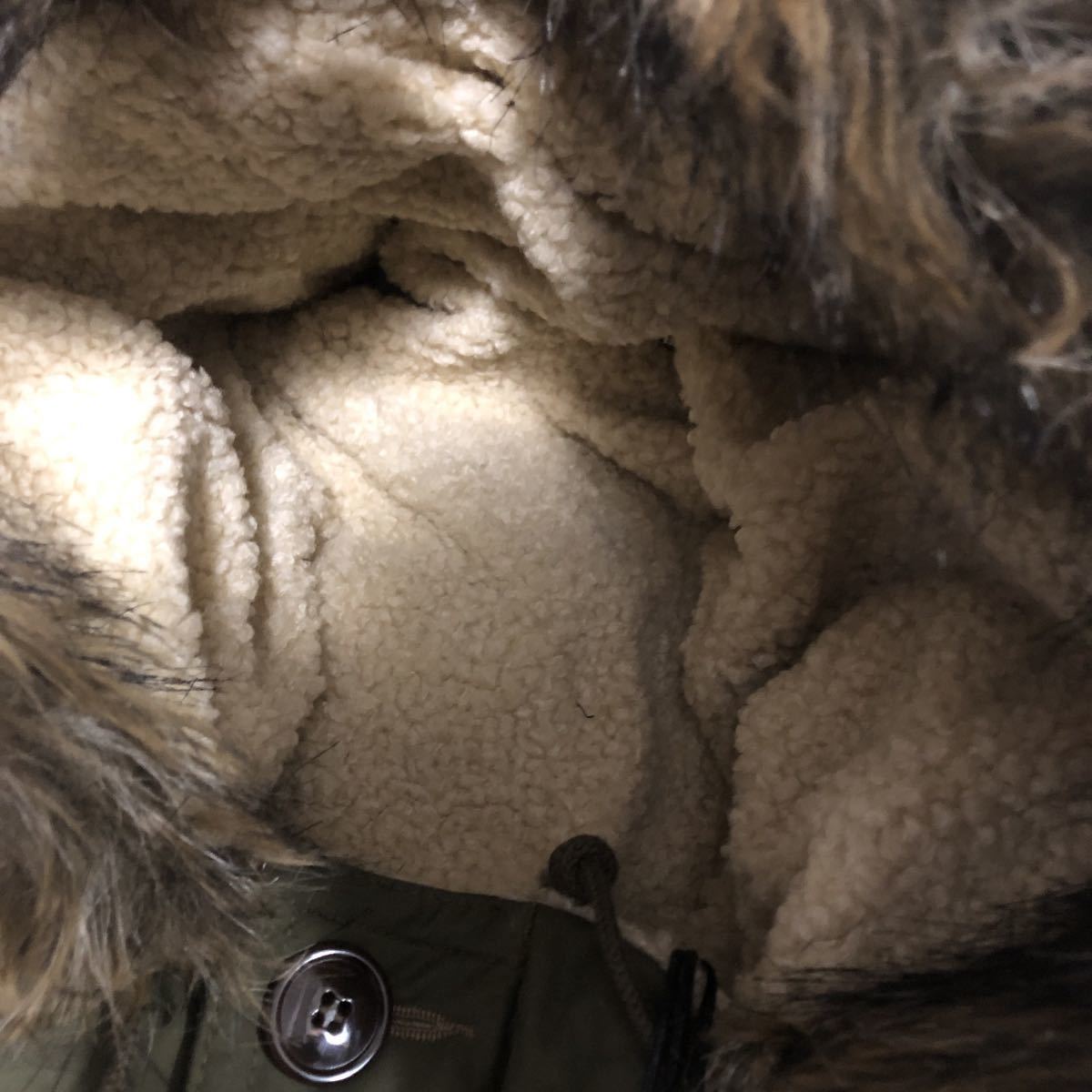 ・本体:綿 52%、ナイロン 48% フェイクファーフード毛皮部分:アクリル 49%、アクリル 系 36%、ポリエステル 15% フェイクファー裏地本体上部分:アクリル 78%、ポリエステル 22% 本体裏地下部分:ナイロン 100% 詰め物:ポリエステル 100% 装飾部分を除く