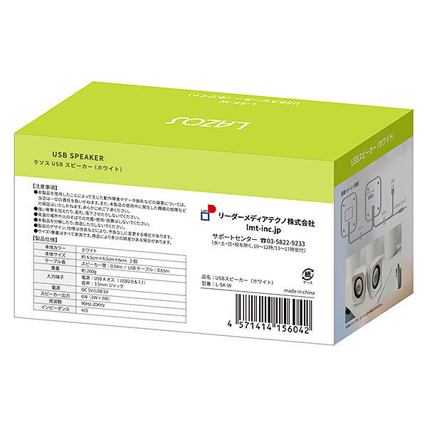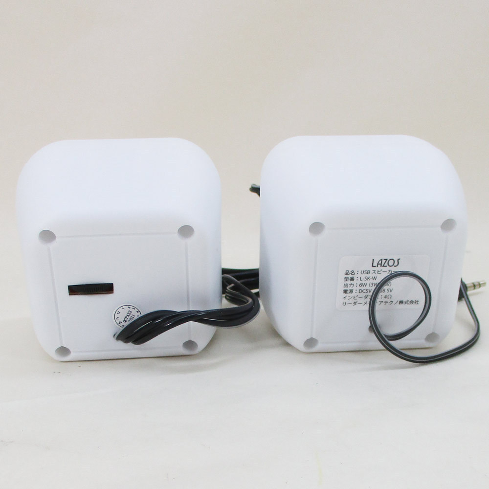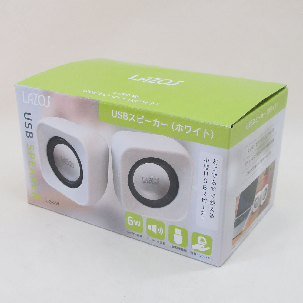 送料無料 USB スピーカー LAZOS ホワイト L-SK-W/6042x2台セット/卸