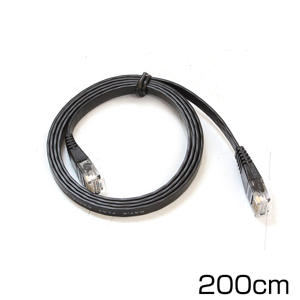 LANケーブル CAT6 2m ブラック 黒 フラットケーブル カテゴリ6 パソコン 有線 薄型