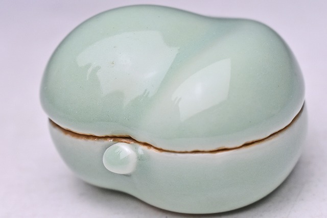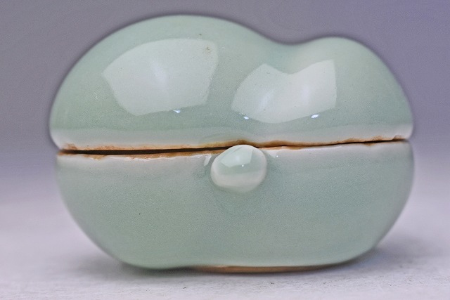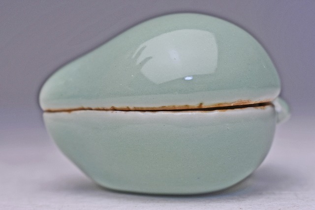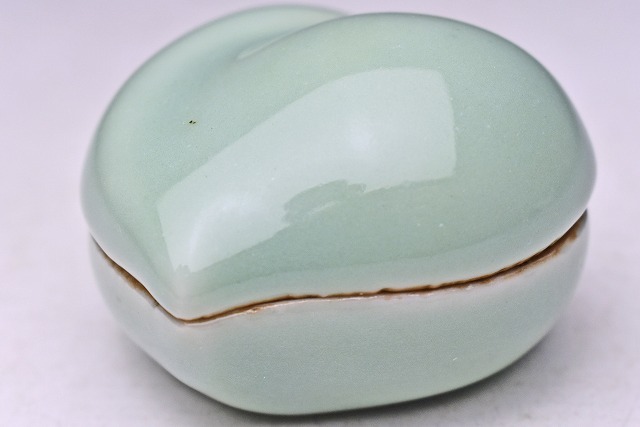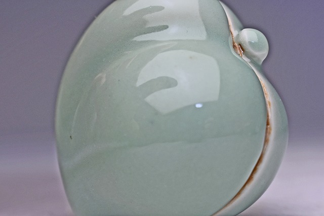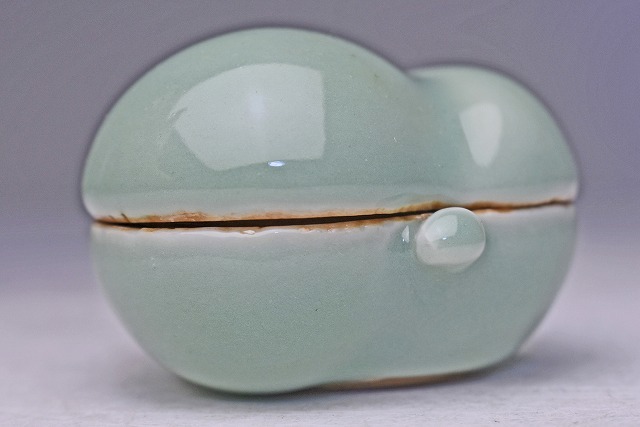 吉祥の 桃の 造形良く 青磁釉が 美しい 逸品です。