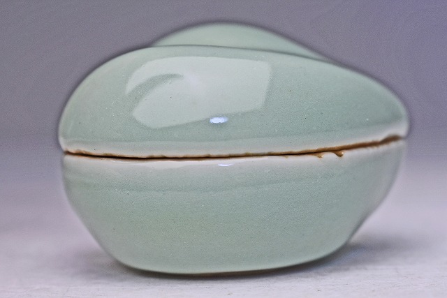眞葛香山 ★ 青磁釉 大香合 ★ 共箱 ★ 造形釉景の美しい希少な逸品 ★ 宮永香山 真葛香山 ★ 横浜焼