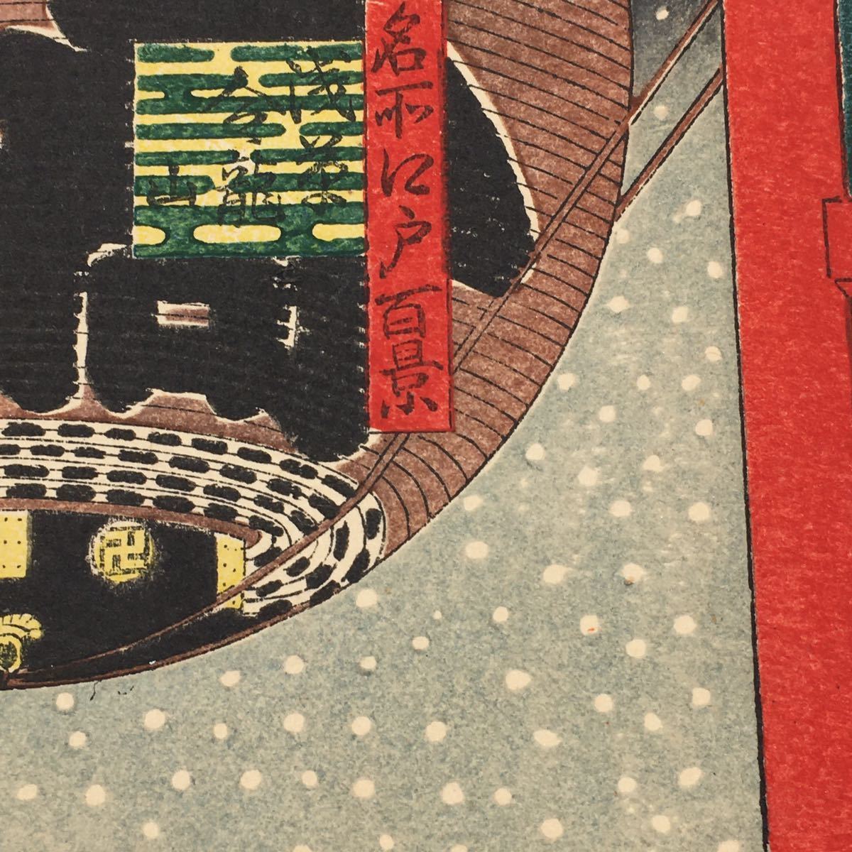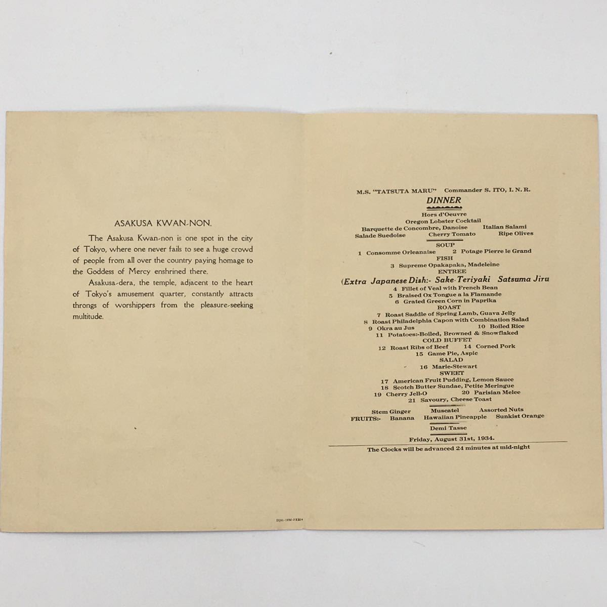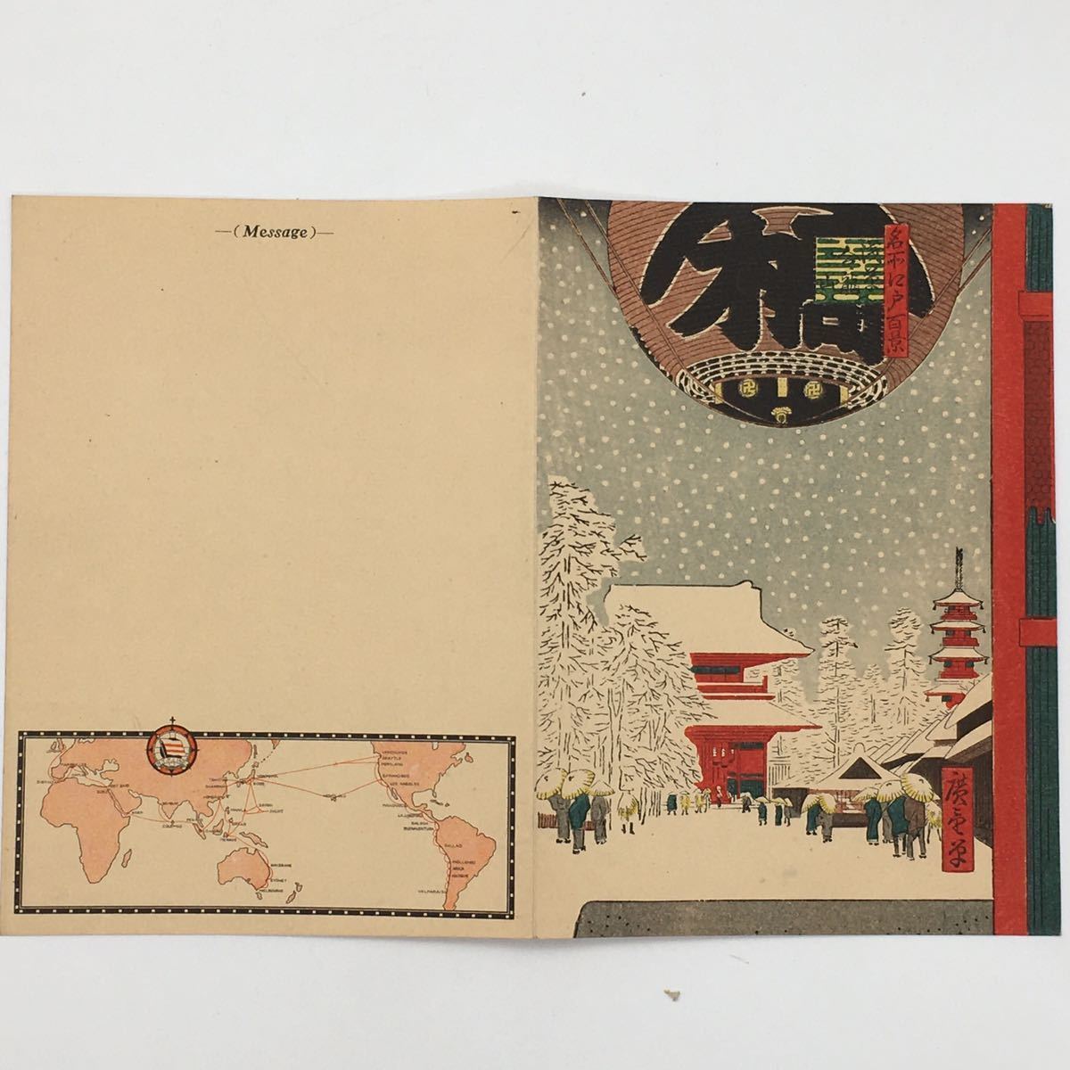 【木版画】 昭和9年 日本郵船 龍田丸 ディナーメニュー 広重初代「名所江戸百景浅草金龍山」 当時物