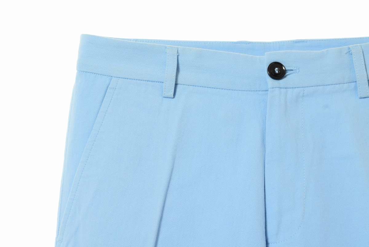 コメント | 鮮やかなブルーカラーがインパクト抜群のテーパードパンツです。 |