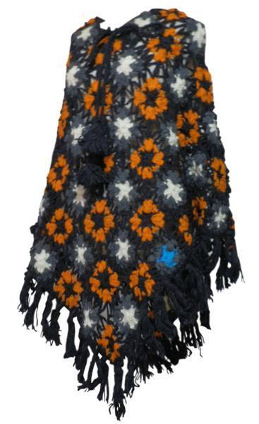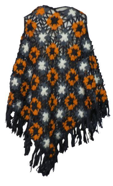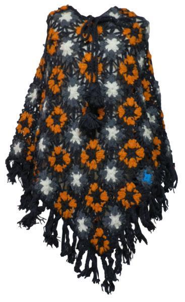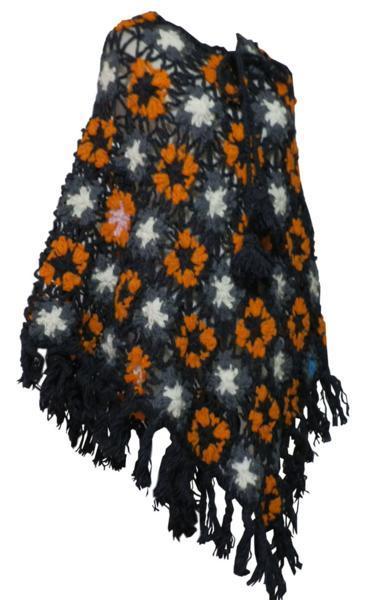 ■☆アジアン衣料 ネパール手編み モチーフポンチョ(NEP-23)