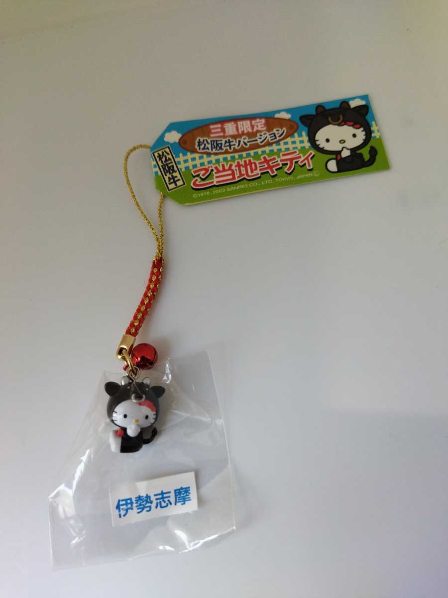 キティ ハローキティ ストラップ 根付 ご当地 限定 hellokitty sanrio 根付け フィギュア 三重 松阪牛 うし cow 2003 牛 鈴 黒