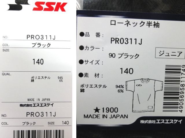 140サイズ 黒 SSK ローネック半袖アンダー エスエスケイ 新品