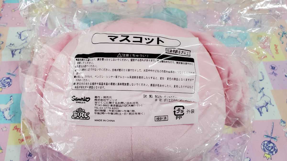 こちらは3番のマイメロのもちもちしたクッションぬいぐるみです。