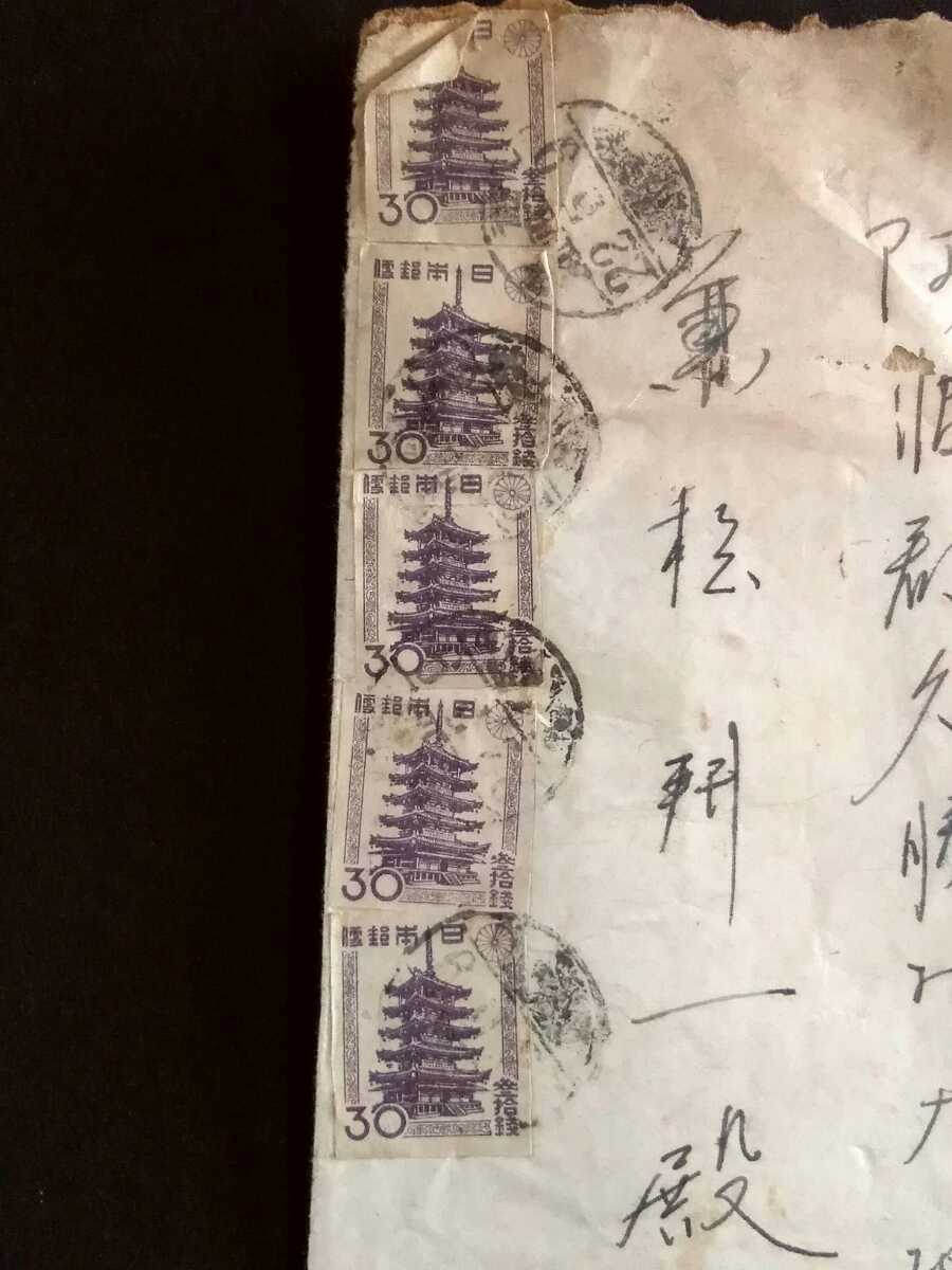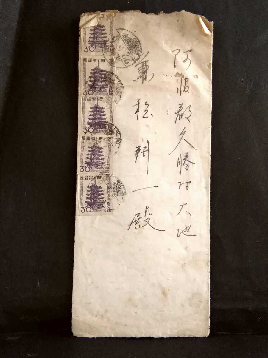 ■エンタイア 新昭和一次 法隆寺30銭 5枚多数貼 徳島 22.5.9 書状