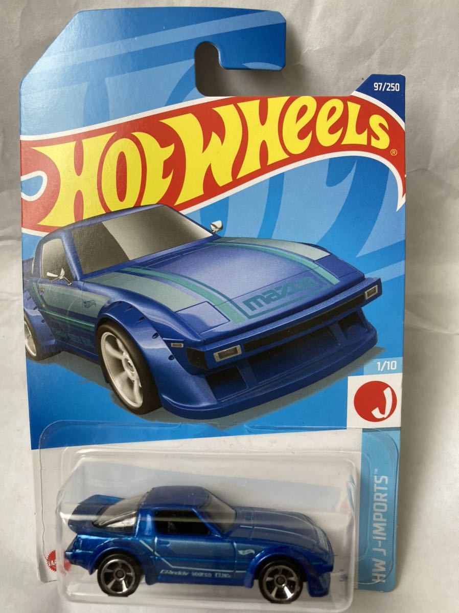 ホットウィール・マツダRX-7 青 (他も出品中)。パッケージ未開封ですが、擦れ等有りますので御了承下さい。