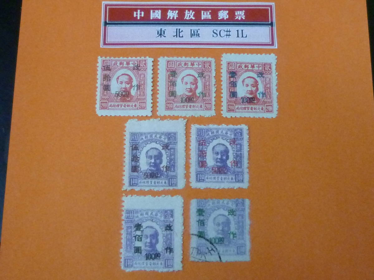 22SE A №7 中国解放区切手 東北区 1947年 SC#1L20-23a 第一版加刷 計7種 未使用NH・VF 1種使用済
