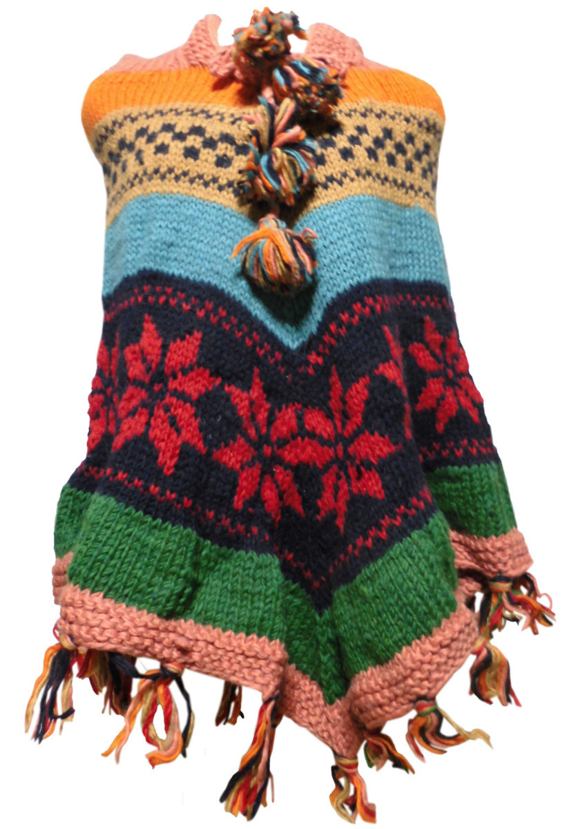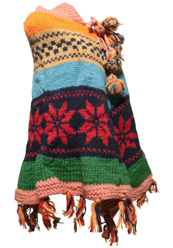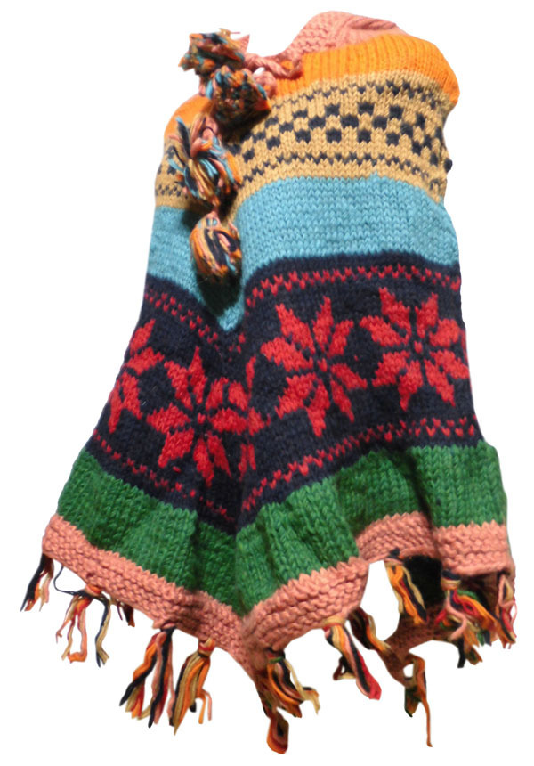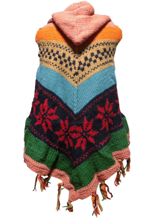 ■☆アジアン衣料 ネパール手編みフード付きポンチョ(WP-43)