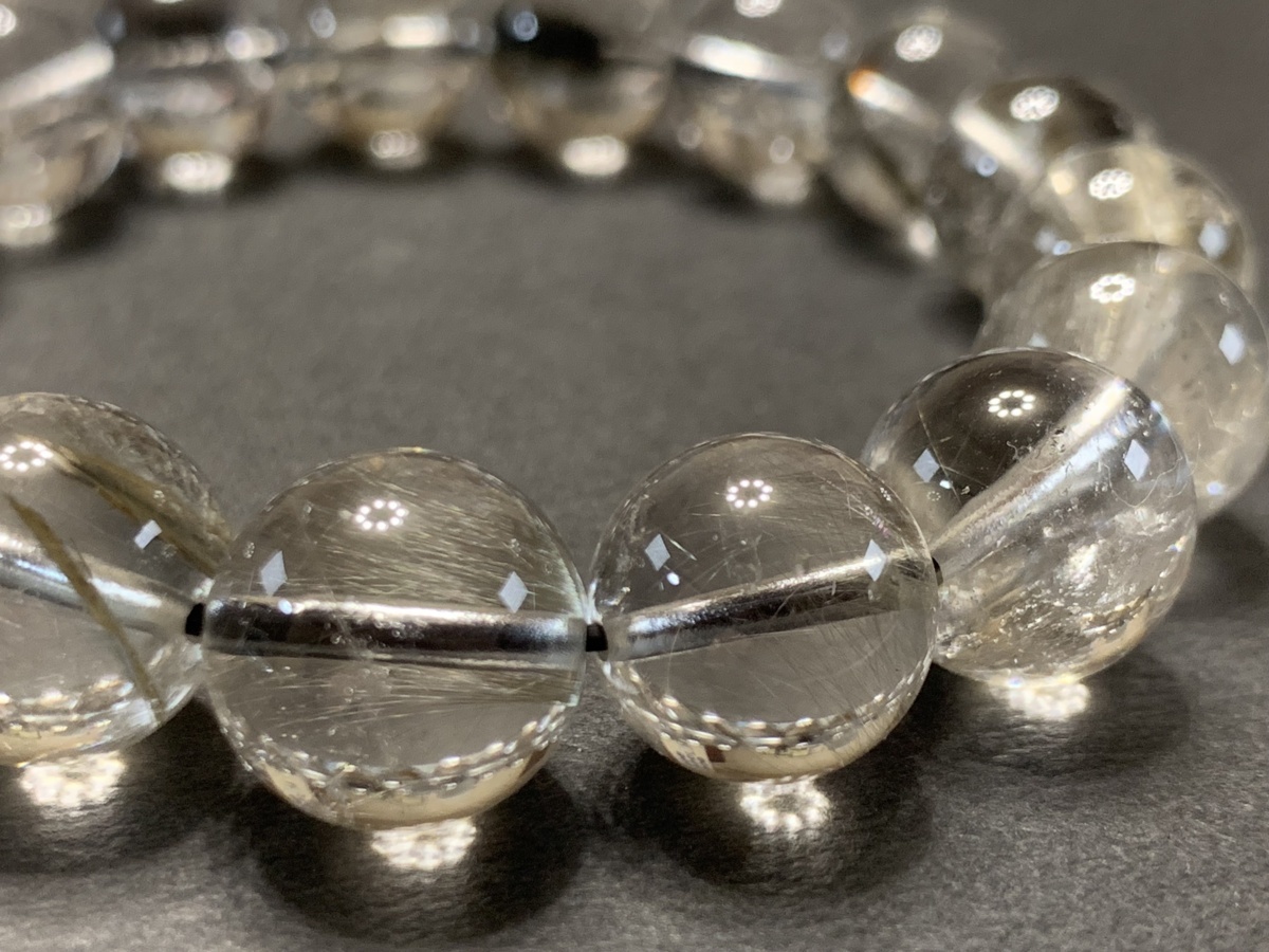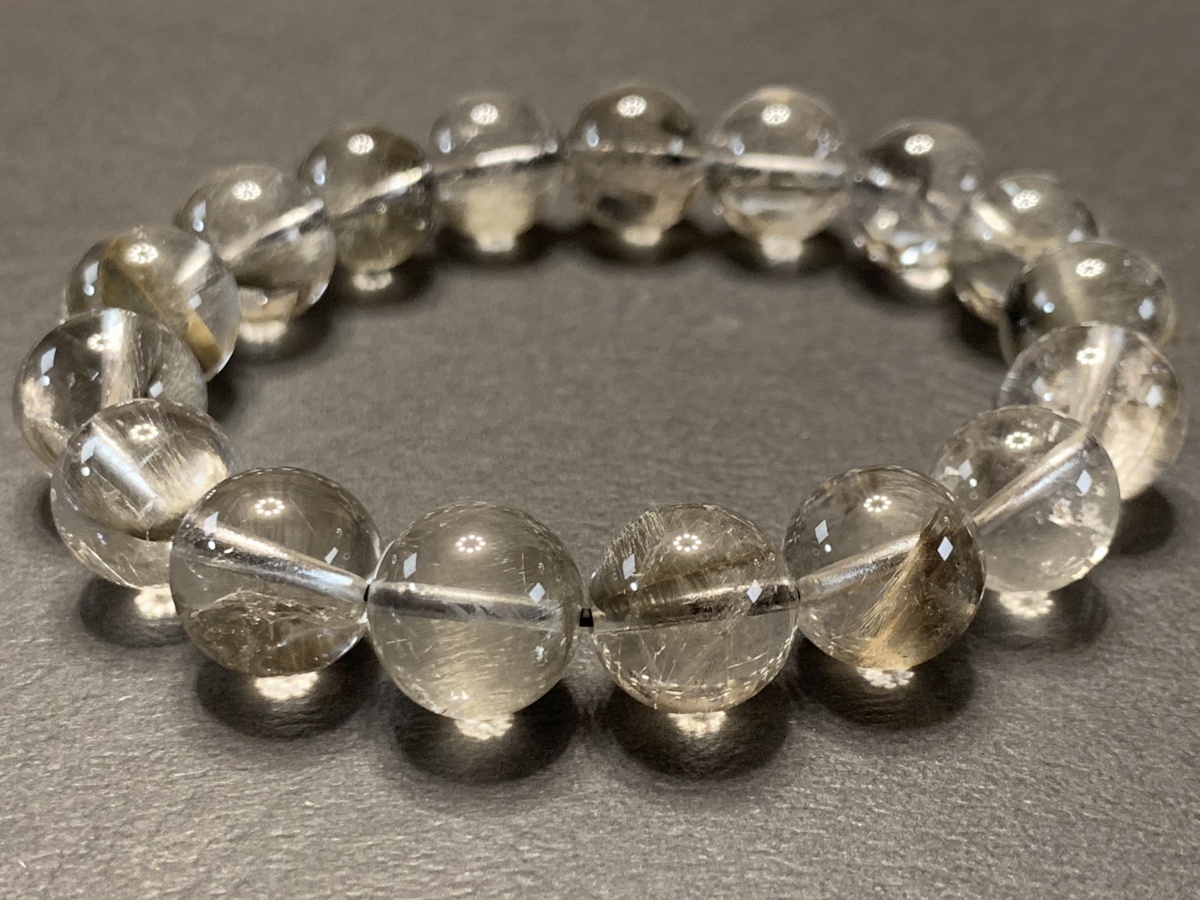 天然石ブレスレット◆【草入り水晶・ガーデンクォーツ】12㎜玉◆未使用品A | |||