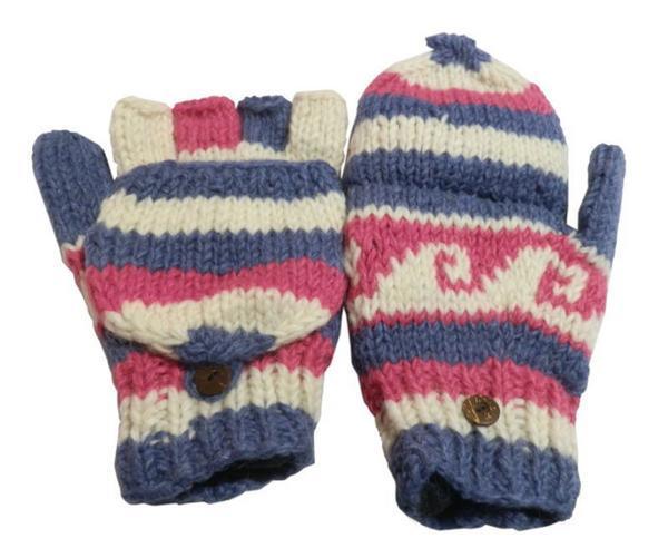 ■☆アジアン衣料 ネパール手編みカバー付き指なし手袋(フリース付)(NSG-26)