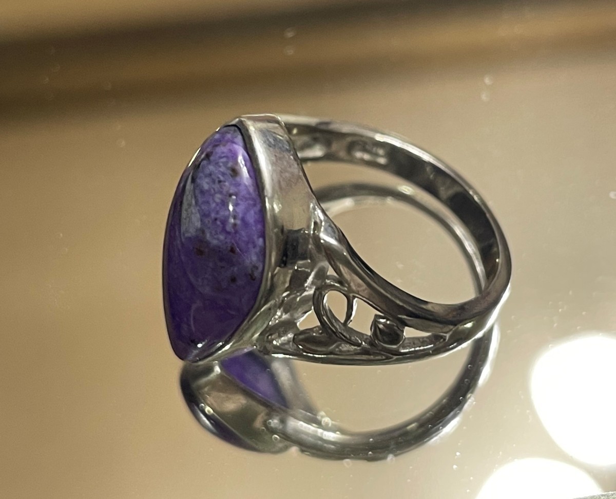 天然石リング◆【チャロアイト】シルバー925 プラチナコーティング 13号 SILVER925◆未使用保管品 | |||
