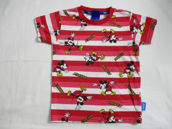 BD996【Disney・ミッキィーマウス】プリント ボーダー 半袖 Tシャツ 訳有 男女児 赤・白 110 | |