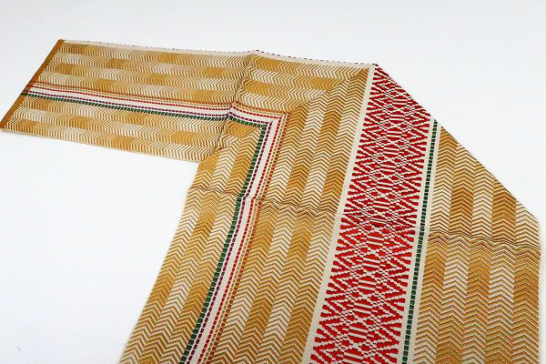 【送料無料】未使用品 本場筑前 博多献上 名古屋帯 茶色×赤茶色 長さ3m90cm 正絹 仕立て上がり m-3321 |