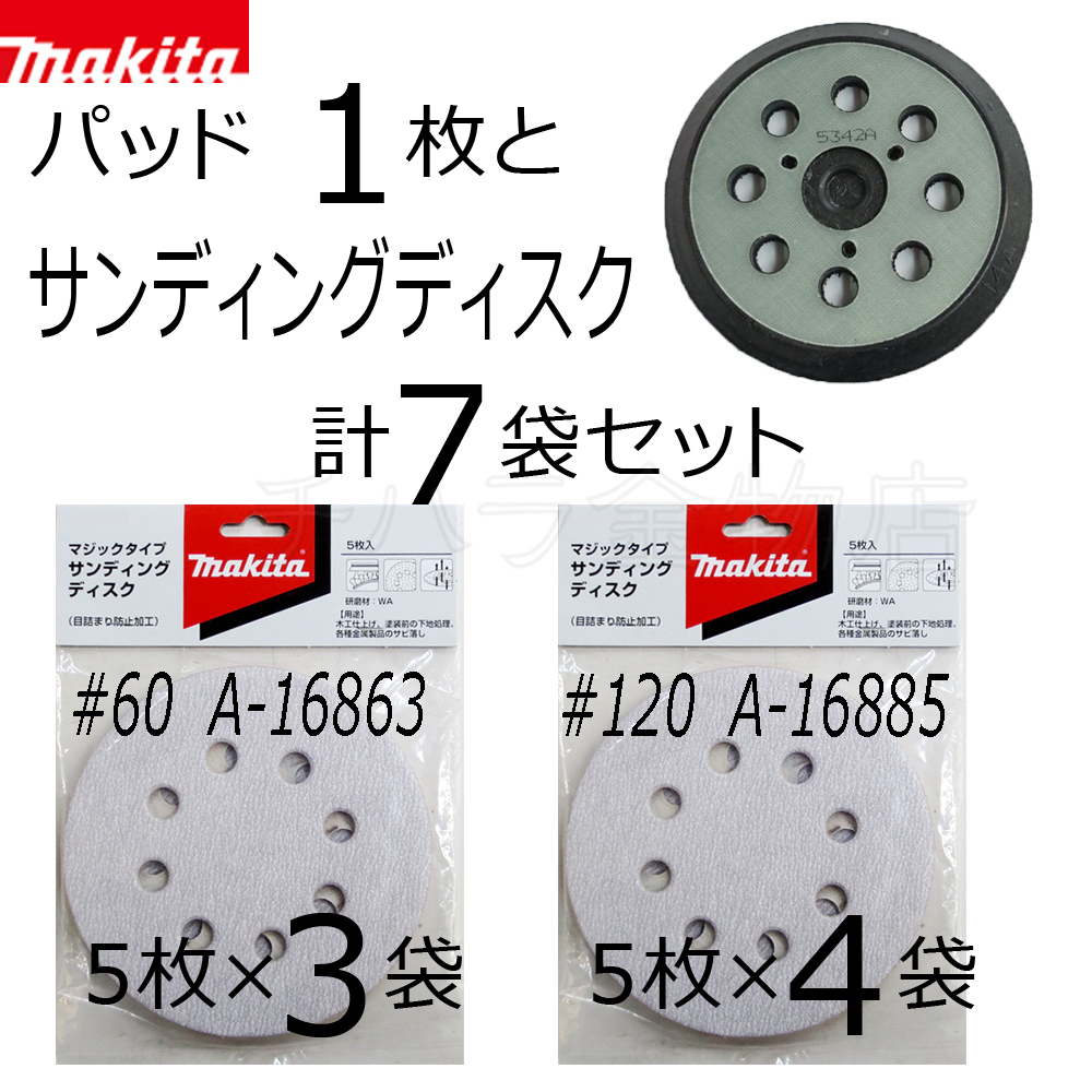 マキタ サンダ用パッド123とサンディングディスク7袋セット 【粗仕上#60/中仕上#120】セット 計7袋(35枚入)