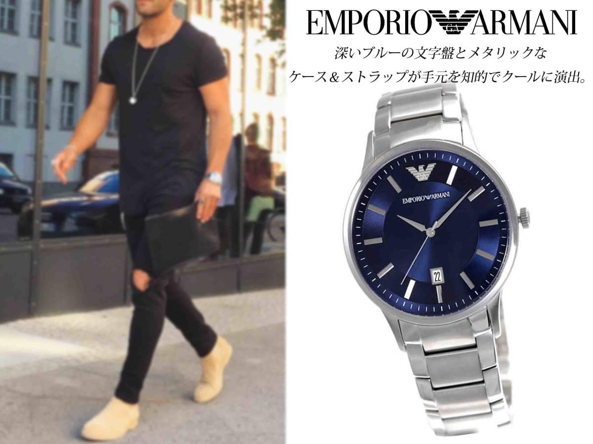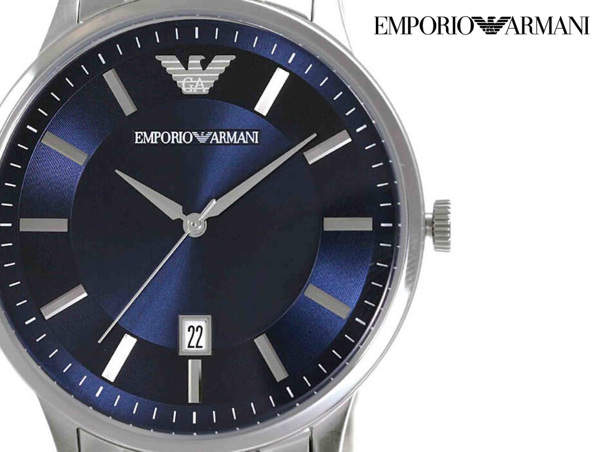 新品■エンポリオ・アルマーニ 37400円■ブルーカラーのコンビネーションが腕元を明るく彩り、知的な印象を与えてくれる 。