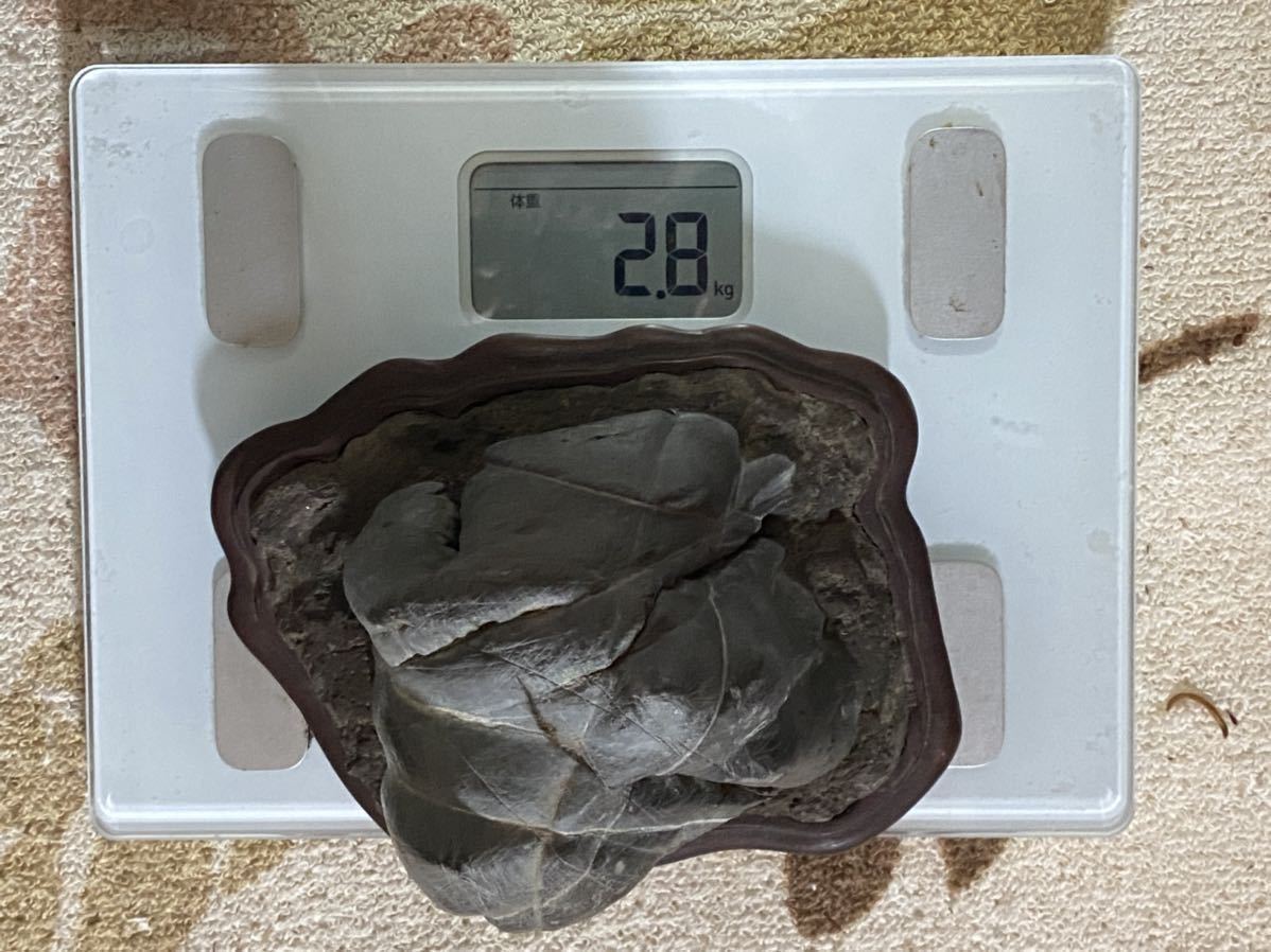 山肌を流れ落ちるいく筋もの白滝が見どころの古谷石です。大きさは高さ約16センチ幅約21センチ(台座部分の差渡し)重さは家庭用秤で約2.8キログラム。花梨彫刻台座付き。欠けやヒビなどの瑕疵は見受けられません。