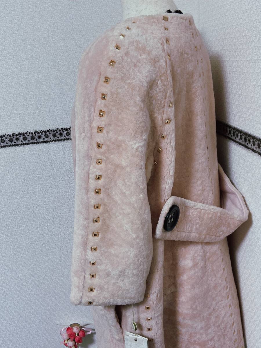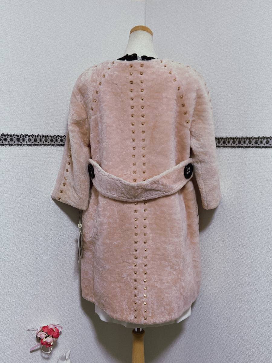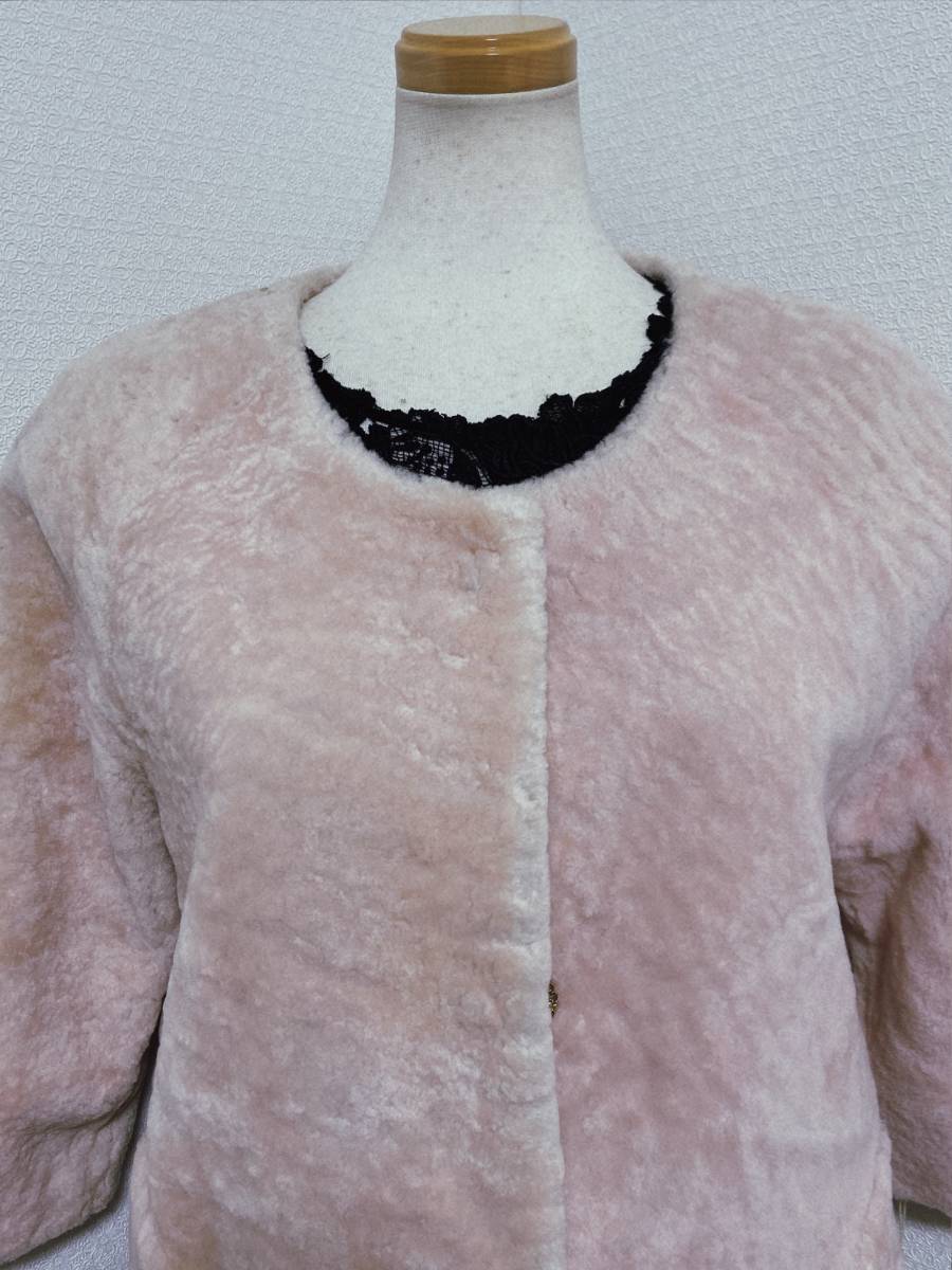 超希少 新品 9~11号 Tadashi Shoji タダシショージ 本物 ウールファーコート 本革 ラムレザー ピンク PL11226MNT