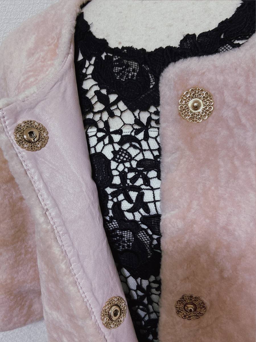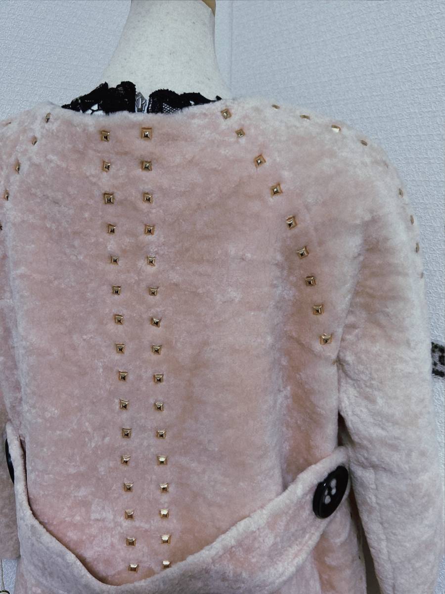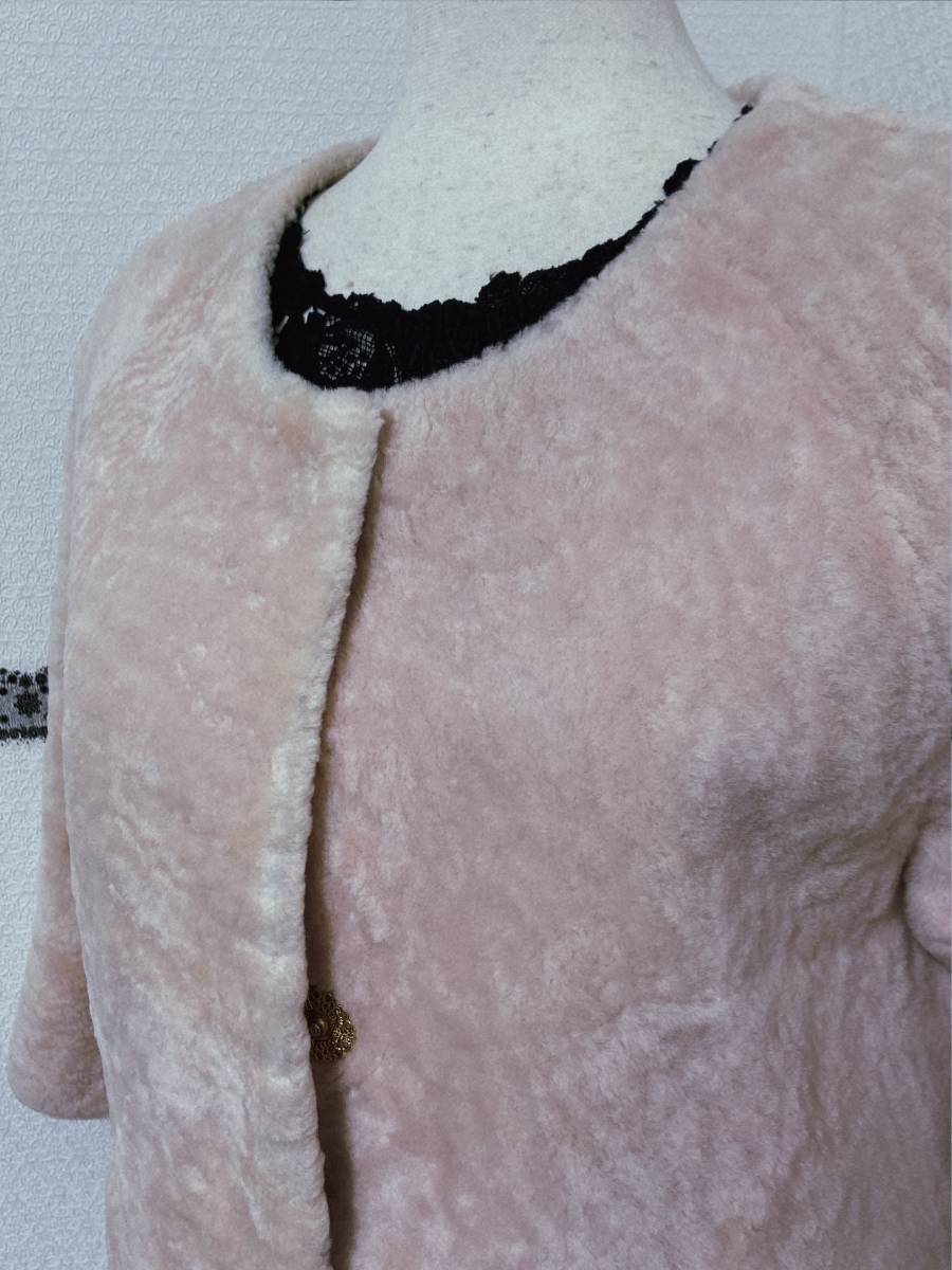 超希少 新品 9~11号 Tadashi Shoji タダシショージ 本物 ウールファーコート 本革 ラムレザー ピンク PL11226MNT
